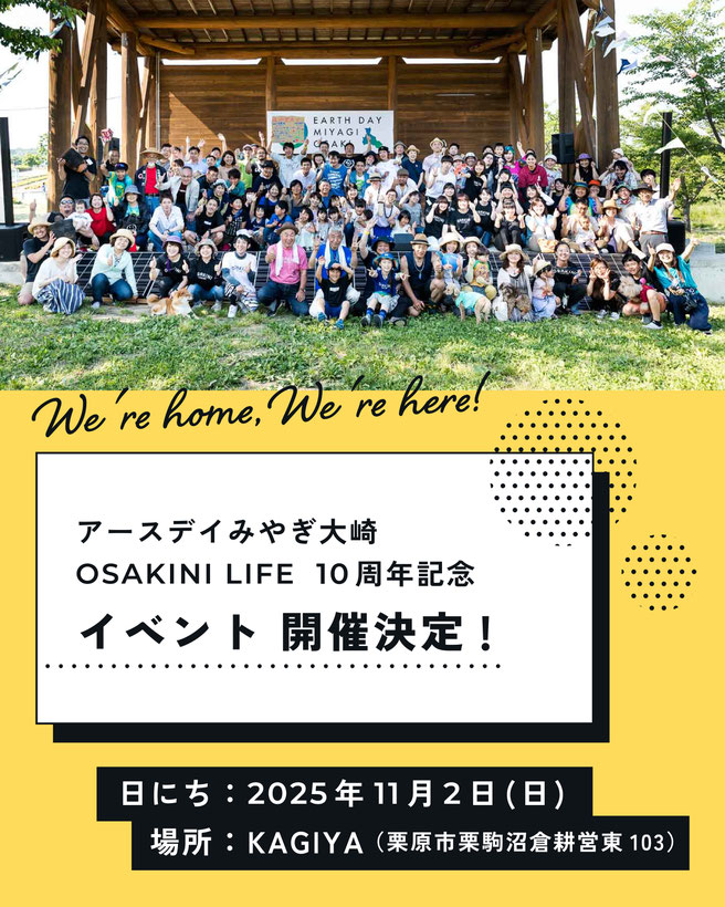 今後どんな展開になるかは正直分かりませんが、この日は「感謝の思いが集まる場にしよう」ということで、その日限りの旧アースデイみやぎ大崎(現OSAKINI LIFE)として開催いたします。